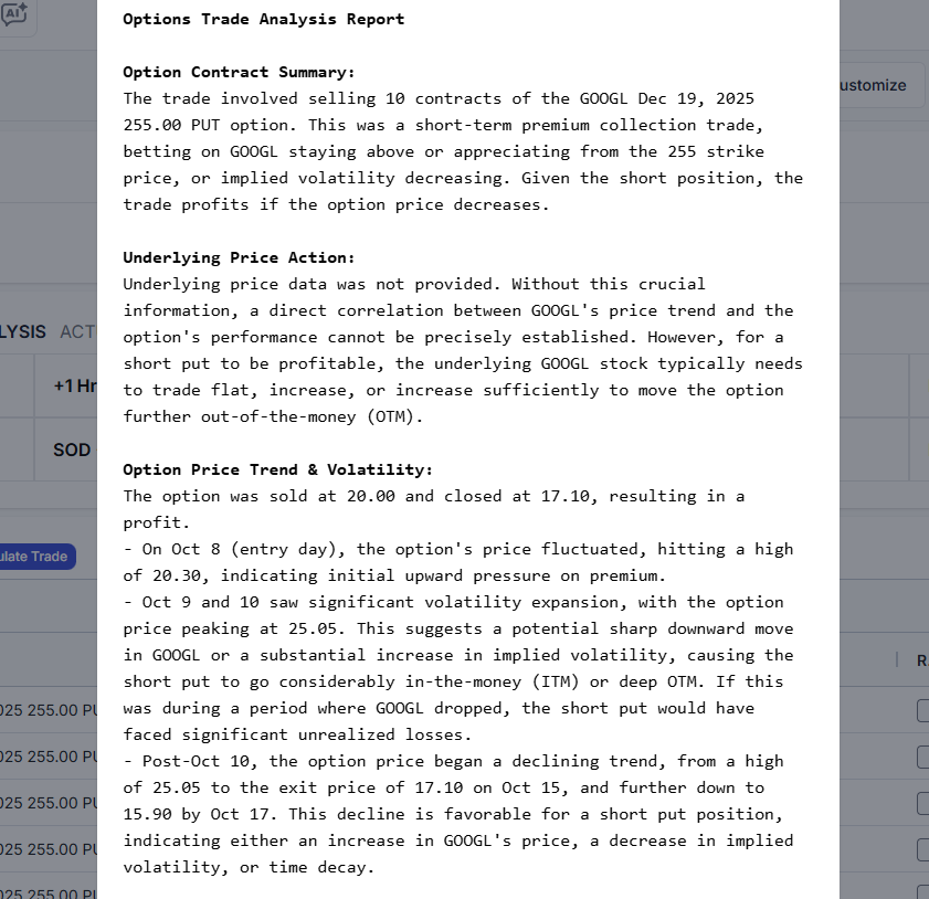 You can now generate the AI trade summary for options trades made in the US and Indian exchanges.