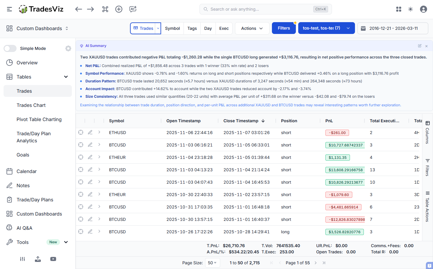 - Artificial Intelligence Question & Answer Analysis: Ask and Visualize Anything on TradesViz Trading Journal