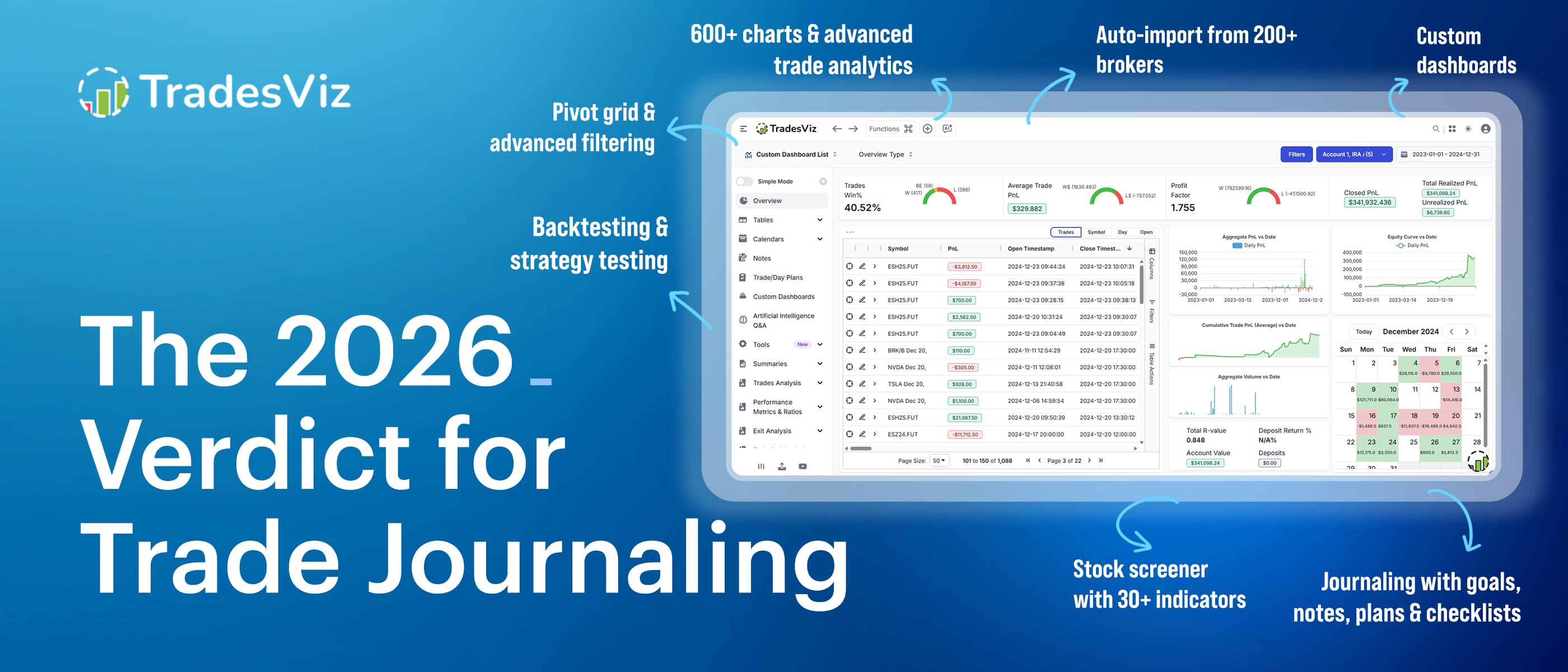 You need professional infrastructure. Spreadsheets will fail you. Vibe apps will bore you. Legacy tools will stagnate under you. You need TradesViz.