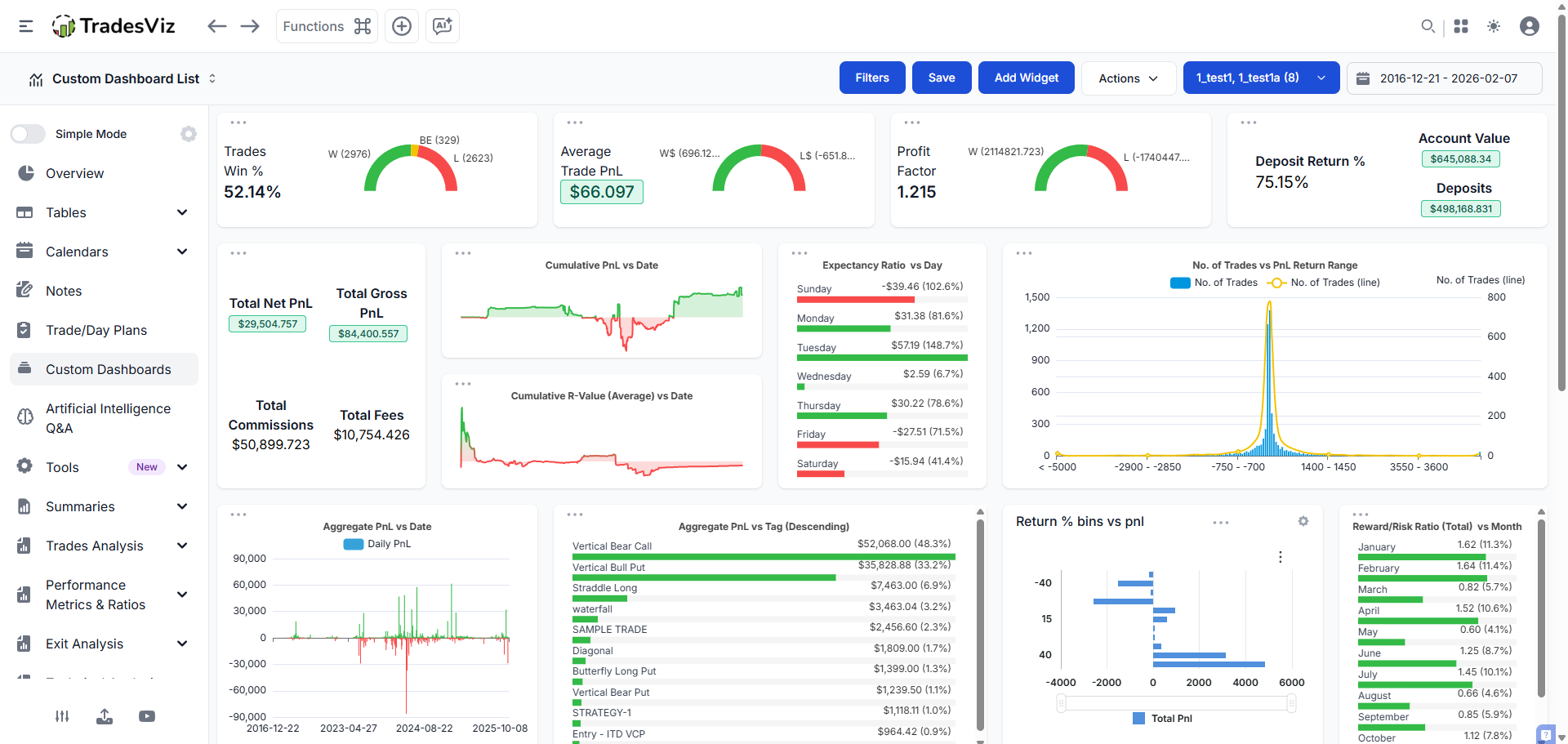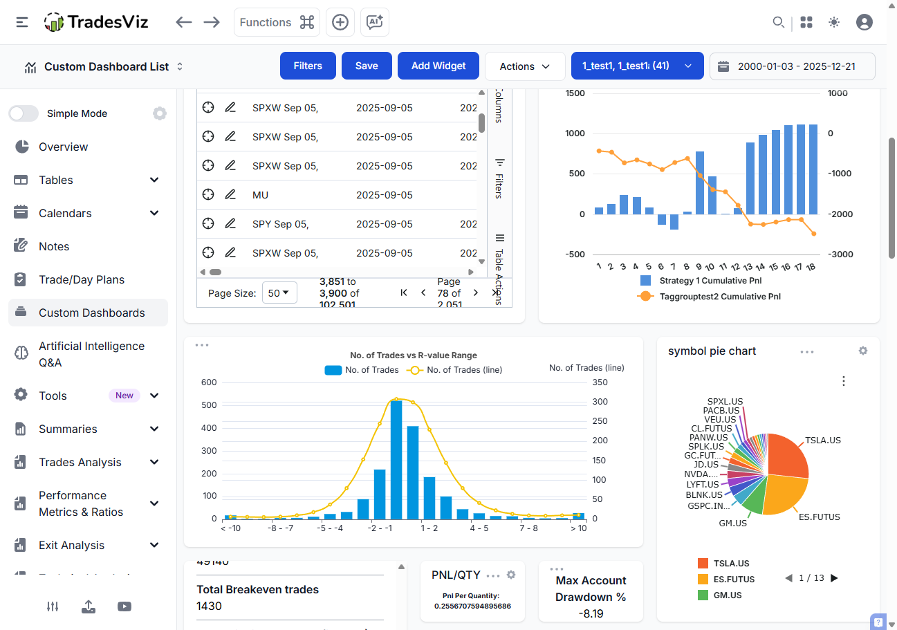 TradesViz was the first trading journal to offer 100% customizable dashboards with over 600 widgets.