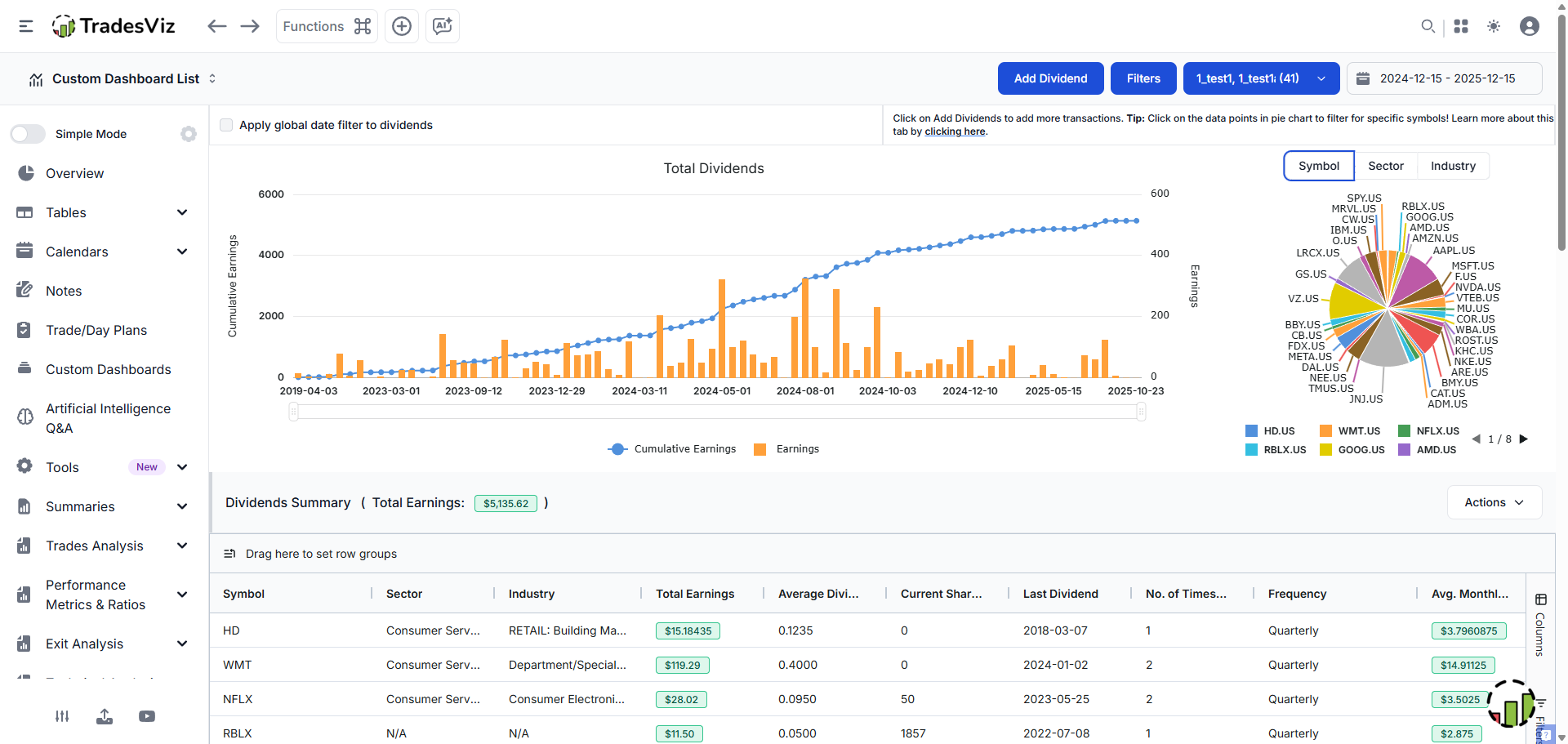 - Per-Sector & Per-Industry Dividend Filters: Track dividend income by sector (Technology, Healthcare, etc.) or industry. Visualize where your passive income actually comes from.