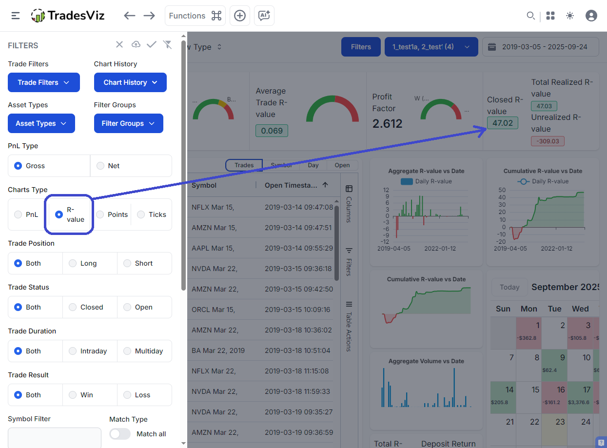 This comprehensive guide will show you exactly how to analyze, track, and optimize these critical metrics using TradesViz's powerful suite of tools. Whether you're a day trader, swing trader, or long-term investor, mastering R-Value and Profit Factor analysis will transform how you evaluate and improve your trading performance.