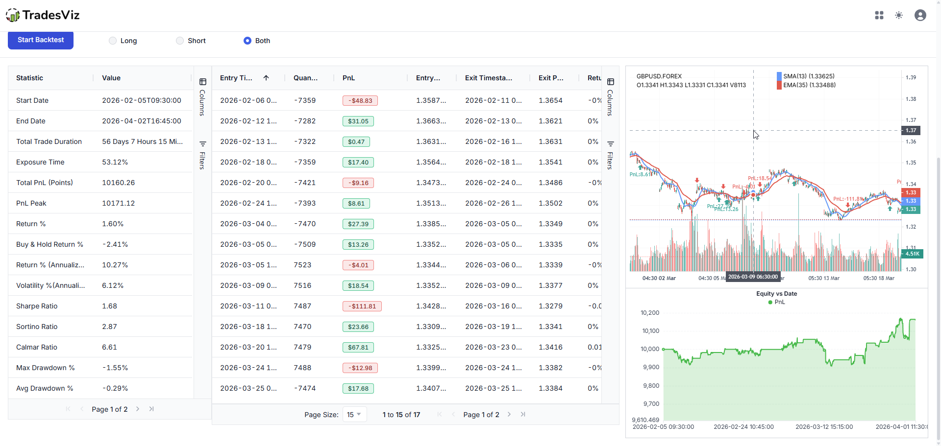 Most platforms give you one or the other. TradesViz gives you both on the same data, across all supported forex pairs.
