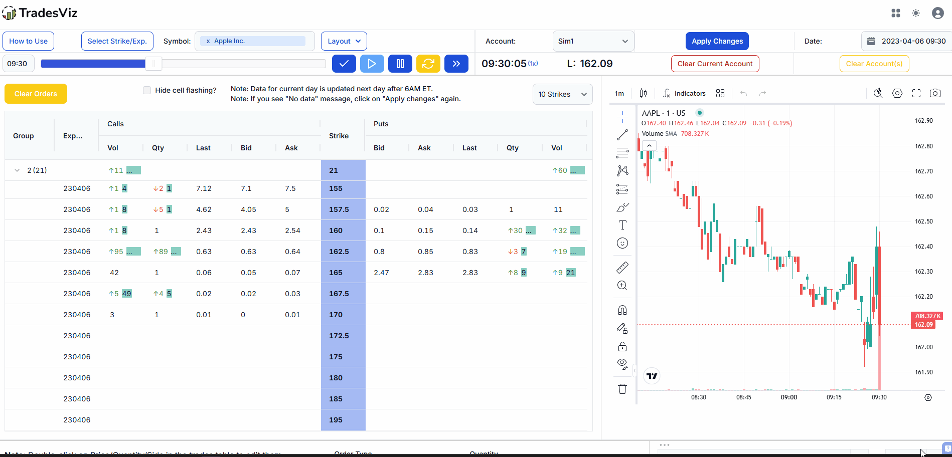 The first (and only) online options chain simulator. Trade a replaying chain just like you would on your broker's platform, except you are using historical data and zero real capital.